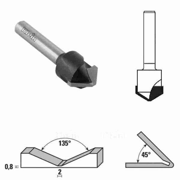 135 degree, D-18mm, D1-2mm, Cutter for Alukabond bending, Sistemiklein, U180.135.R